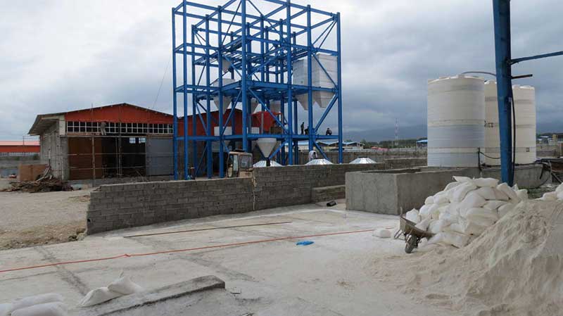ب- کربنات کلسیم: این ماده به صورت سنگ لاشه معدنی از منابع مربوطه استخراج و طی خط پودر سازی به سایز مورد نظر که حدود 300-200 مش است تبدیل می شود. کنترل کیفی این ماده بخصوص از نظر سایز- درصد کلسیم- عناصر مضر مانند اکسید منیزیم و غیره ضروری است که با انتخاب سنگ مناسب و کنترل آزمایشگاهی صورت می گیرد.